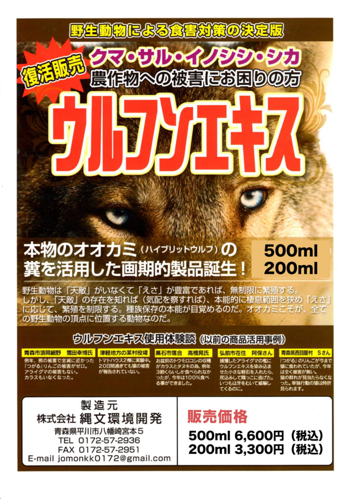 オオカミの糞にニオイは忌避剤として縄文環境開発では実証データを集めています。